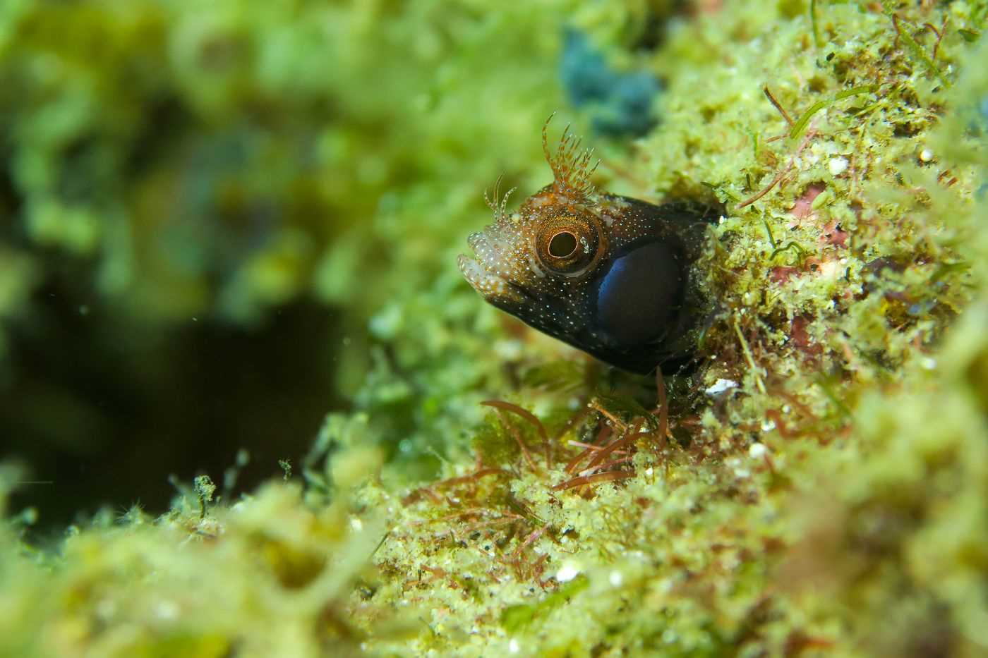 We spent much of the morning planning and discussing our options for activities for the week. Then during lunch, the Lindblad undersea team went on a scuba dive to gain video footage of the diverse aquatic life in the area. The team was able to document and share a rich array of marine life including large schools of surgeonfish, several types of both nudibranchs and flatworms, pufferfish, purple gorgonians, sea stars, and more. They also found a rare sight: an endemic brown cheek blenny, a fish with an interesting life story that is smaller than a pinky finger, yet colorful and intricate.
