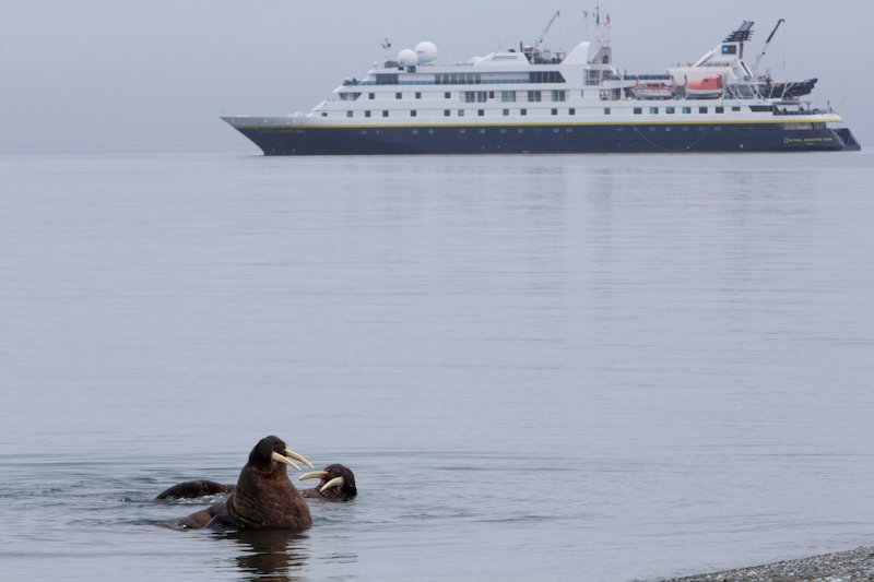 It was late when we headed back to the National Geographic Islander chaperoned by sea birds. The sunset looked impressive, coloring the island with a special orange color that provided the best background for memories of this magical week in this natural paradise.