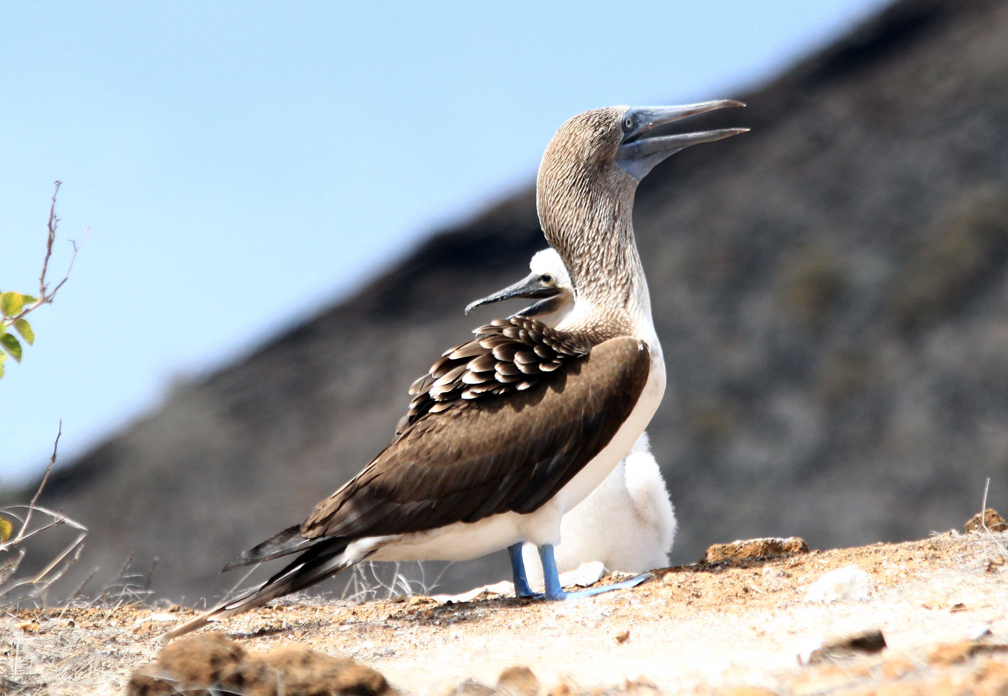 After a long navigation from Santa Cruz Island the National Geographic Islander arrived to San Cristobal, one of the oldest islands in the archipelago. Our destination was the easternmost point of the island known as Punta Pitt. This is a refuge for three species of boobies and many other species of sea birds, such as frigate birds, storm petrels and swallow tailed gulls. After breakfast we drove our Zodiacs along the coast near the landing site to disembark on the green sandy beach where sea lions were expecting us. We took a narrow trail that leads to the top of the hill to observe a great number of blue footed boobies nesting along the trail. We saw fluffy chicks protected by their parents who were just resting or feeding them. In the distance, perched on trees, red footed boobies nested. Even from a distance it was possible to see their unmistakable blue bills just beside their babies. Far from the canyon that brought us here there is a cliff where this small booby species nest and we were lucky enough to see a couple of them. The real surprise occurred the moment a Chatham mockingbird came close and jumped over the heads of two of our explorers in order to investigate us. That was something unexpected!