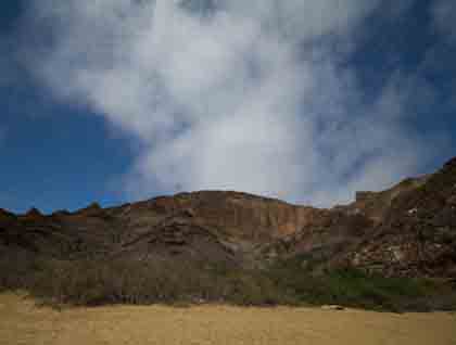 We had a cloudy morning; the perfect weather to hike along the ravine created by water erosion in the old volcanic ashes substrate. As we slowly moved into the trail some red-footed boobies landed nearby the few existing plants. The area makes you believe there is nothing around but it turns out we were wrong.