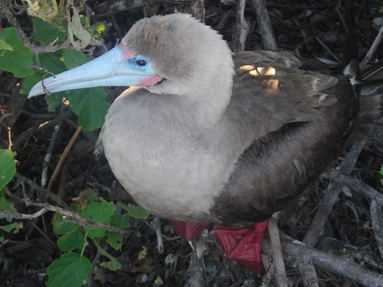 The beach at Punta Pitt this morning, is made out of olivine, incredibly soft green sand, that is the result of eroded particles of the hardest crystals and minerals that make a lava flow. The little beach transported us to an enchanted kingdom, which was completely surreal; the glittered sparkles of crystals seemed to be the result of a fairy flying around here… At the end of the trail, a small colony of red footed boobies surprised us, birds facing the difficult conditions of the season where patiently taking care of the single chick on their nests; perching by itself on an solitary branch we found one fully grown adult with red feet that had to be photographed.