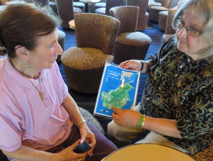 Up on the bow, we strain our necks to see the tops of countless ribbons of water streaking down the smooth rock faces; waterfalls so thin that some appear to simply vanish into a misty veil long before they reach the valleys below. Other, more robust falls come roaring down to splash into the bay. The glaciers have done us a favor, cutting this fjord so deep and vertical that our captain can maneuver the ship within just a few meters of one such a waterfall, close enough that the mist fogs our camera lenses. Linda Burback, our photo instructor, is on deck making sure guests are capturing memorable images of their morning in Red Bluff Bay.