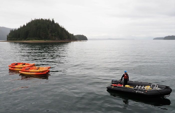 The voyage continues. After navigating through the Lynn Canal and then west to where the Cross Sound and the Gulf of Alaska meet, we anchored in Granite Cove, where our adventures began. In true Lindblad form, we rode Zodiacs from National Geographic Sea Bird to George Island, a former outpost during World War II. Just as we stepped onto the rocky shore, the clouds parted, and sunshine beamed upon us as if to welcome our exploration. Groups set out by foot and by kayak to take in the sights. We found a multitude of colorful lichens in the forest, seaweed on the beach, and sea stars in the tidal zones. No matter where we explored, we were bound to get great photos. Back on board, there was a buzz of chatter during lunch as we compared notes on what we saw. A quick repositioning of National Geographic Sea Bird brought us to “the Hobbit Hole” in the Inian Islands archipelago. Here, the color of the water is a striking teal. It’s the only entrance for the Pacific Ocean to pour nutrient-rich waters into the northern reaches of Southeast Alaska, so the chances of seeing marine mammals and seabirds are good. The afternoon Zodiac runs did not disappoint. We saw sea otters, harbor seals, rhinoceros auklets, and bald eagles…oh my! As we headed back to the ship in our Zodiacs, a light, cool drizzle began and gave way to a brilliant rainbow, uninterrupted by the buildings, traffic, or crowds we’re accustomed to. Lucky for us, we have a couple more days for moments like this one on our floating home.