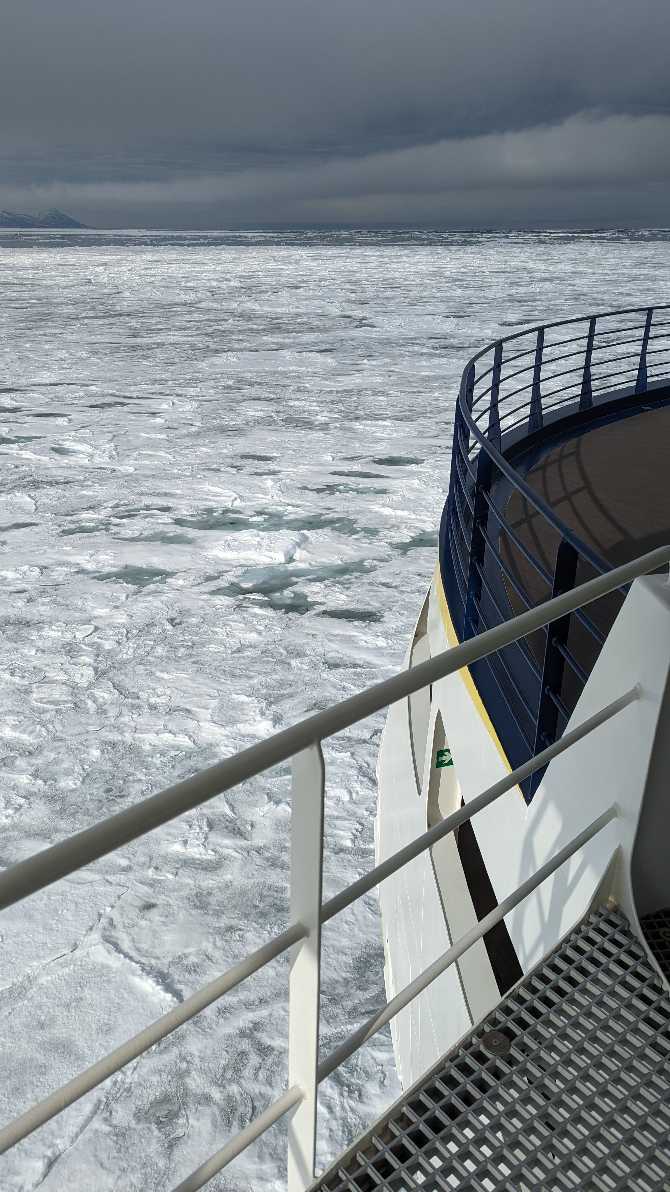 Unlike yesterday, this morning, we did not wake up to the loud sounds of crushing ice, even though we did pass some sea ice during morning hours in Freemanssundet. We started off our day with a lovely lecture on glaciers from Ezra, one of our naturalists. Suddenly, we received an announcement from the expedition leader, Stefano, that a haul-out of almost 200 walruses had been spotted. Swiftly, all of the Zodiacs were lowered, and we enjoyed a delightful short Zodiac exploration around Kapp Lee. Opposed to yesterday’s exploration between ice floes, where we, with one exception, only saw females, we were only able to spot male walruses on land and in the surrounding water. Some of them were quite curious, and we were able to admire their large size and spectacular tusks. It is incredible that animals of that size sustain themselves by only eating small mussels and remain so incredibly elegant while swimming! After eating wonderful Swedish meatballs and taking an afternoon nap, we headed back out. It was time for our first longer hike in the Arctic wilderness! And what an afternoon it was! We landed on a beach that was pink with flowering purple saxifrages. Yet, howling wind reminded us that we are indeed still in the harsh Arctic. But the wind accompanied by occasional snow and rainfall did not disturb our exploration. Looking at the remains of old fox traps, one can’t help but wonder how people that landed here centuries ago must have felt when facing this barren landscape when they first arrived. In the surrounding ponds we saw lots of birds - red phalaropes, whose females are the showy and colourful ones, majestic-looking king eiders, and long-tailed ducks. In the distance, we spotted cute and curious Svalbard reindeers. They seemed to have decided to lie down to avoid this windy weather to the best of their abilities, and curling up on the ground made them look like fluffy piles of snow. During the rest of our hike, we enjoyed the vast openness of the Arctic tundra and the feeling of being just a small human amongst this majestic landscape. After a slightly bumpy Zodiac ride, we were back in the warmth and comfort of the ship. The evening ended with an interesting recap, a delicious dinner, and a well-deserved break, after which