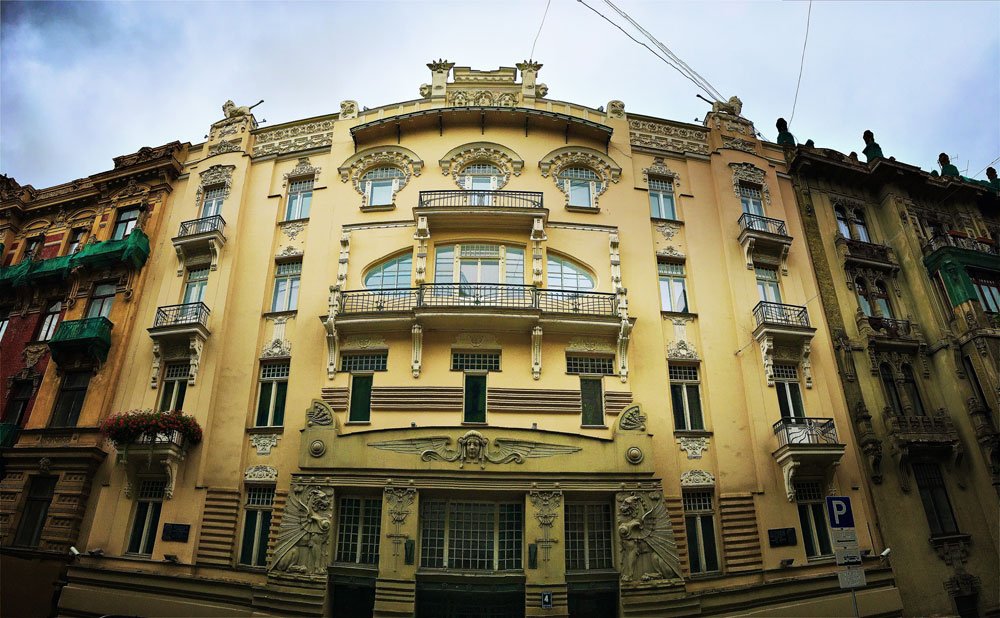 Luckily the rain held off in the morning long enough for us to enjoy relatively dry outings during the first part of the day. One group went off on a walking tour to explore some of Riga's striking Art Nouveau buildings, most of which were constructed between 1903 and 1914 (a time when Latvia was part of the Russian Empire). Not to be confused with Art Deco, a slightly later architectural style, Art Nouveau, or "new style", features flamboyant sculptures, imposing gargoyles, and floral motifs. Some of the most striking examples were designed by Mikhail Eisenstein, a Russian of Jewish heritage who also happened to be the father of Sergei Eisenstein, the Soviet Union's most famous filmmaker (Battleship Potemkin).