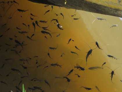 We made a short visit to the village of Urarinas for handicrafts. Items made with seeds, shells, catfish fins, porcupine quills and lots of palm fibers were on display for our perusal and purchase. A boat was being loaded while we were there with the local fish. Packed in large wooden crates with ice, an oversized canoe was soon to be on its way to Iquitos with fresh fish caught along the Rio Zapote.