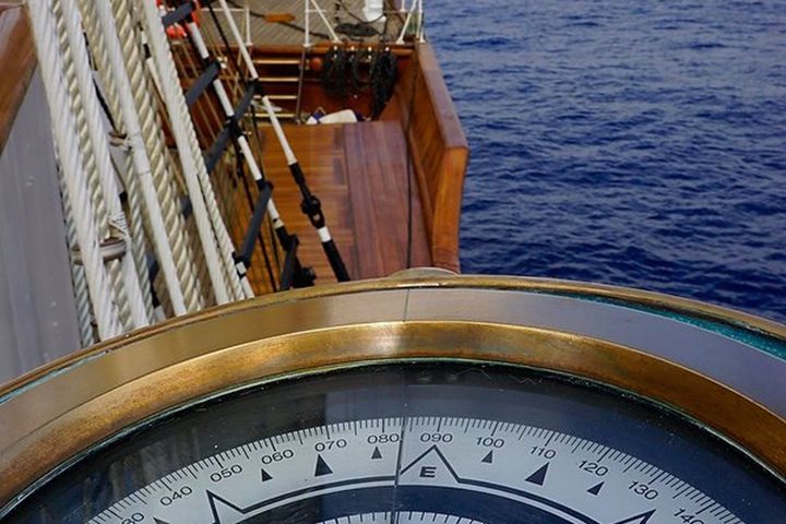 Casting off at midnight, we leave the harbor of Siracusa and finish our action-packed week on the island of Sicily. We now have two days to sail east across the Ionian Sea, and good fortune and the God Aeolus have given us a shift to a very favorable southwesterly wind of about 20 knots. We couldn’t ask for better wind from a better direction, so by 8:00 the sailors went aloft and set sails with hopes of sailing overnight and well into the following day. Twenty-knot winds are too strong to set the royal and sky sails, but with t’gallants and all sails below, plus staysails, inner and outer jib, we had an absolutely glorious day of sailing at about seven knots toward Greece.