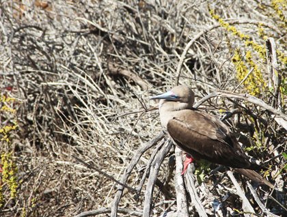 The end of the trail is spectacular due to mostly red-orange vegetation called Portulaca, and around this area we find the nests of red footed-boobies. Some sitting in the nests with their chicks, and others just starting out with their breeding. We could take very good pictures of them here, they are all so beautiful.