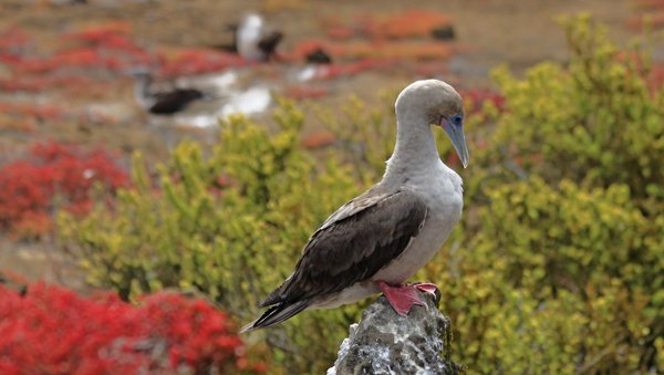 The end of the trail was spectacular due to the red-orange vegetation called Portulaca. Around the area we found the nesting of the red footed-boobies, some sitting on the nests, others just starting with this business. A few blue footed boobies were also nesting here.