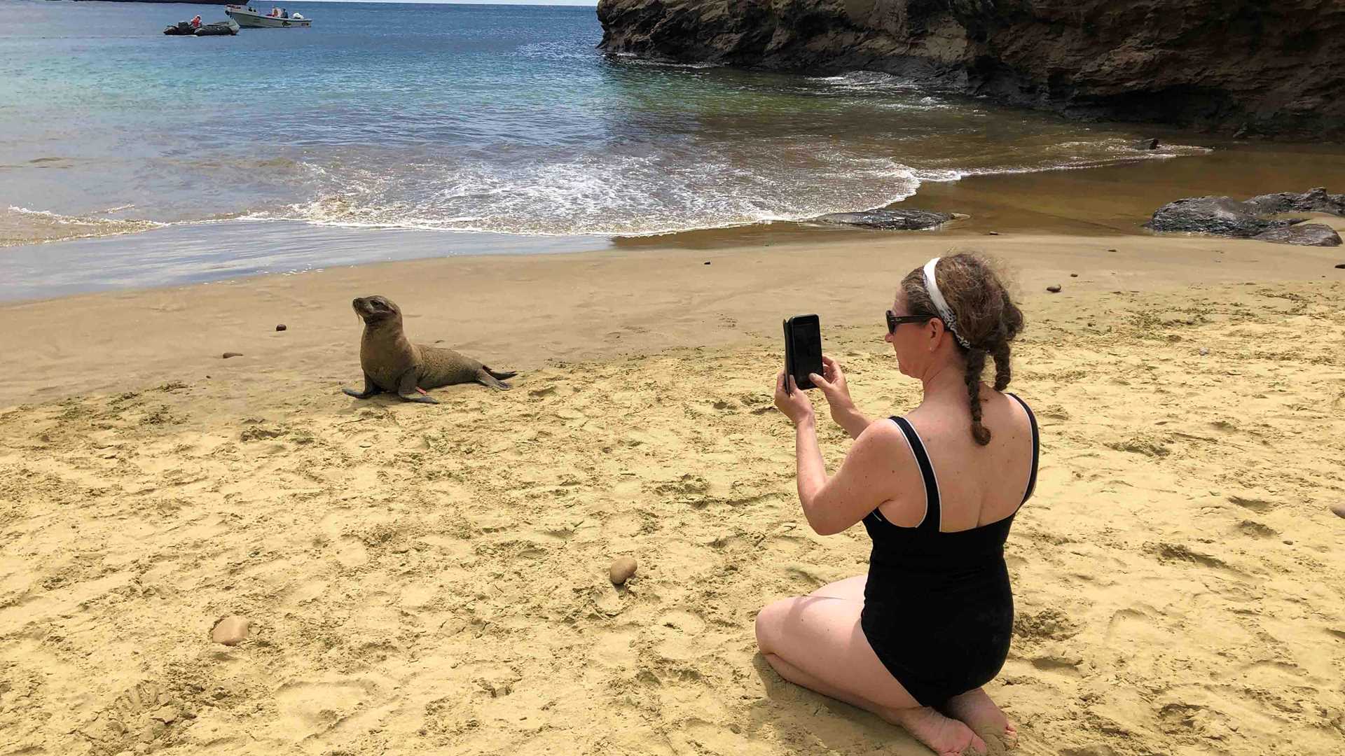 After the excursion, we returned to the landing site, a green sand beach made up of olivine crystals and sparkling quartz particles, to enjoy our last snorkeling excursion in the company of some sea lions. Around noon, we had a delicious lunch, and after a short rest, we landed on Cerro Brujo, one of the most beautiful beach areas of the Galapagos, situated in the central west of San Cristobal Island, and very possible visited by Charles Darwin in 1835.