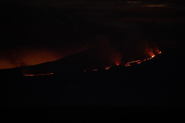 We woke up early in the morning as National Geographic Islander navigated along the northern part of Isabela Island. Slowly the sun appeared above the clouds surrounding Volcano Wolf. We spotted our first birds as Galapagos fur seals returned to shore from their night hunt. We enjoyed a great breakfast. Afterward, expedition leader Vanessa called everyone to the bow to celebrate as we crossed the equator. Our guests happily crossed the line. Approaching Punta Vicente Roca, the visitor site, we spotted Galapagos sea lions and a good number of ocean sunfish. The first activity of the day took place as we dropped anchor at Punta Vicente Roca. This is a spectacular geological site. The combination of the former volcano’s tall cliffs and the tuff cones formed later adds an amazing contrast to this unique visitor site. Our best tools for exploration, our Zodiacs, were lowered down, and off we went to explore the coast. We observed Nazca boobies and blue-footed boobies resting on the small ledges of the tuff cones. Galapagos sea lions swam close to our Zodiac, and Galapagos penguins rested on a broken piece of the tuff cone after feeding. What a wonderful sight! In a calm area, we found a good number of Pacific green sea turtles. The morning’s activities ended with snorkeling. Pacific green sea turtles, plenty of colorful fish, Galapagos marine iguanas and flightless cormorants surrounded us. It was a phenomenal experience! The ship was repositioned toward Fernandina Island. The youngest island of the archipelago, Fernandina is a highlight of our expedition. This island shows our guests the beginning of life. We observed animals thriving in the hostile environment. Pioneer plants like lava cacti grow on the lava fields, breaking down rocks little by little to create soil for the next generation of plants. Punta Espinoza is known for its huge colony of Galapagos marine iguanas. It is hard to distinguish the iguanas from rocks since they are so dark in color. On the other hand, colorful Sally Lightfoot crabs added contrast to the young, dark lava fields. We ended our walk as the sun was setting, returning to the ship with great memories. It was a fantastic day in the western part of the archipelago.