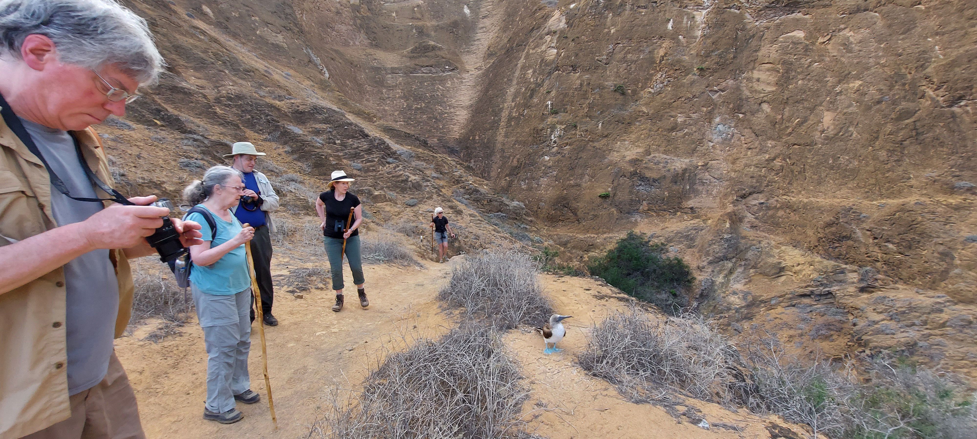 It’s our first full day of expedition on National Geographic Islander . We started our day with a morning hike on North Seymour, which is one of the best islands to observe nesting colonies of frigatebirds, blue-footed boobies, swallow-tailed gulls, and many more species of marine birds. Later in the morning, National Geographic Islander navigated to the beautiful Rabida Island, where we enjoyed an amazing afternoon. Guests swam and snorkeled with sea lions and many different species of reef fish off the red sand beach. We walked to a pond located behind the beach and observed flamingos nesting after more than 20 years on this island.