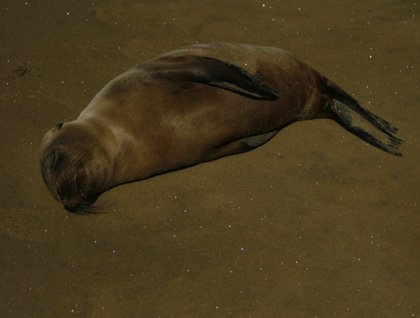 We arrived today to Cristobal Island, to a place called Punta Pitt. San Cristobal is the political capital of the Galapagos Islands and the most eastern island we visit during the trip. On the northern part of the island, million year-old lava flows form the landscape. Also located here are multiple tuff cones that have been severely eroded by rain and wind. This is the place where we landed in the morning. The day was windy and sunny, so we had a great time hiking to the summit of a long canyon before we reached the shore. We saw beautiful birds in hues of red and we met a couple of nesting blue footed boobies as well. Our morning ended on the beach, with a wonderful sea lion swim.