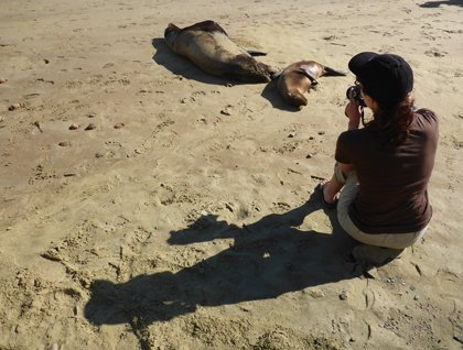 San Cristobal Island is the destination on our last expedition day and was the first island visited by Charles Darwin during the Voyage of the Beagle in September, 1835. We started our first hike at Punta Pitt, an old tuff cone with impressive cliffs. The hike to the plateau and viewing point led us to an area covered with patches of red Sesuvium, or Galapagos carpet weed. We found a colony of red footed boobies nesting. These boobies are the only ones, among the 3 species found in Galapagos, that nest in trees and bushes along the cliffs. Today we got to see some chicks and eggs! Once we finished our beautiful, yet uphill hike, it was time to enjoy the beach and the playful sea lions. We had a blast swimming and taking pictures of them.