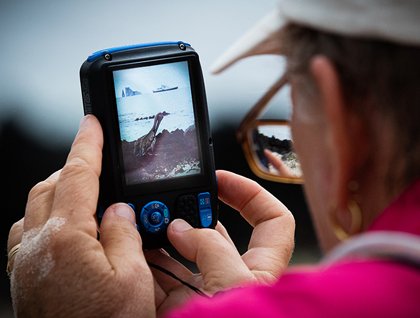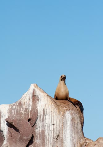 In the afternoon, our captain repositioned the National Geographic Endeavour to a site north of Puerto Baquerizo Moreno. Cerro Brujo was the perfect place to end this incredible week. We enjoyed a spectacular ride on our fleet of Zodiacs, which gave us the opportunity to survey the impressive geology of the shoreline. Once we had landed on the soft sandy beach, we found iguanas basking on the rocky shorelines like sculpted dragons, sea lions playing, sleeping and romping like puppies, and birds pecking around our feet. We strolled along a dazzling white beach among dozens of resting and cavorting sea lions, and some of our guests went for a refreshing swim right off of the beach. To end the day, our captain circumnavigated Leon Dormido at sunset, while all of us gathered at the deck to share the wonders of the Galapagos Islands.