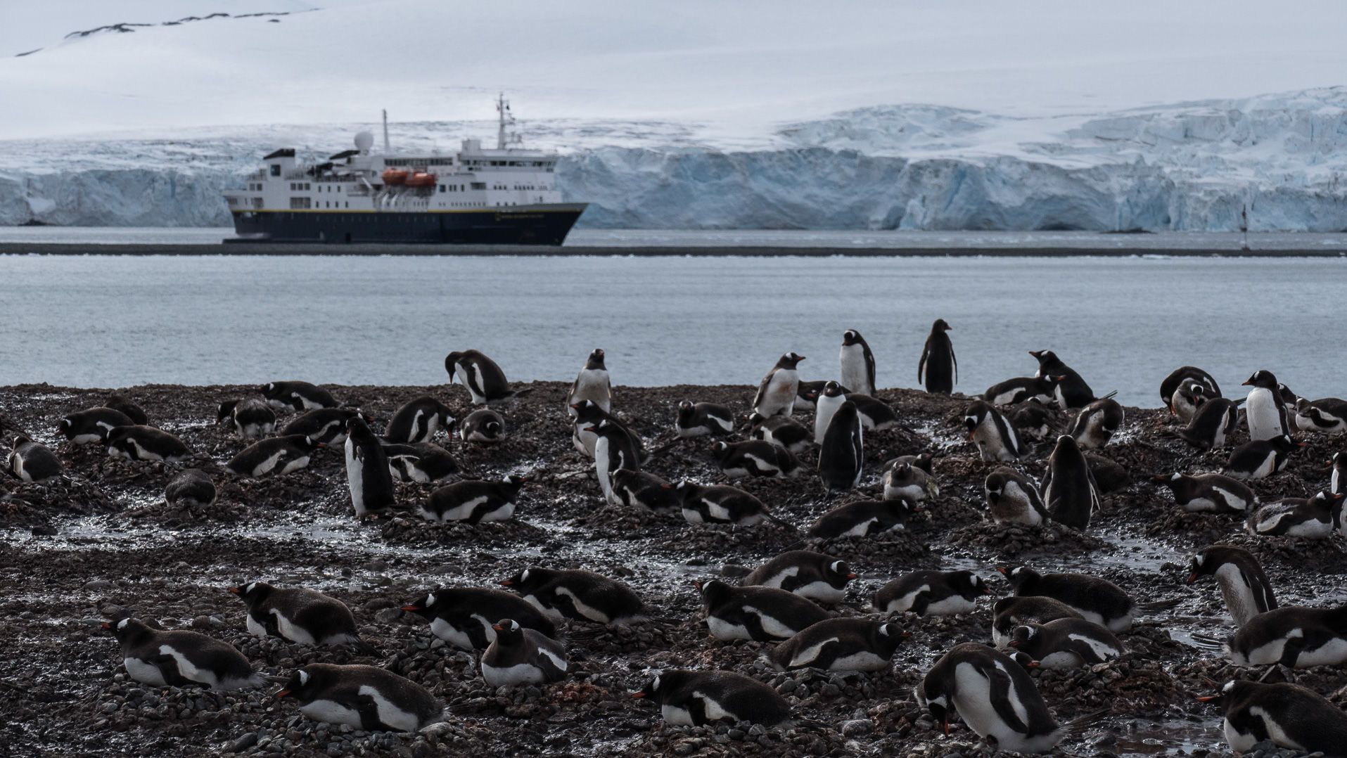 We woke up early in the morning as National Geographic Islander navigated along the northern part of Isabela Island. Slowly the sun appeared above the clouds surrounding Volcano Wolf. We spotted our first birds as Galapagos fur seals returned to shore from their night hunt. We enjoyed a great breakfast. Afterward, expedition leader Vanessa called everyone to the bow to celebrate as we crossed the equator. Our guests happily crossed the line. Approaching Punta Vicente Roca, the visitor site, we spotted Galapagos sea lions and a good number of ocean sunfish. The first activity of the day took place as we dropped anchor at Punta Vicente Roca. This is a spectacular geological site. The combination of the former volcano’s tall cliffs and the tuff cones formed later adds an amazing contrast to this unique visitor site. Our best tools for exploration, our Zodiacs, were lowered down, and off we went to explore the coast. We observed Nazca boobies and blue-footed boobies resting on the small ledges of the tuff cones. Galapagos sea lions swam close to our Zodiac, and Galapagos penguins rested on a broken piece of the tuff cone after feeding. What a wonderful sight! In a calm area, we found a good number of Pacific green sea turtles. The morning’s activities ended with snorkeling. Pacific green sea turtles, plenty of colorful fish, Galapagos marine iguanas and flightless cormorants surrounded us. It was a phenomenal experience! The ship was repositioned toward Fernandina Island. The youngest island of the archipelago, Fernandina is a highlight of our expedition. This island shows our guests the beginning of life. We observed animals thriving in the hostile environment. Pioneer plants like lava cacti grow on the lava fields, breaking down rocks little by little to create soil for the next generation of plants. Punta Espinoza is known for its huge colony of Galapagos marine iguanas. It is hard to distinguish the iguanas from rocks since they are so dark in color. On the other hand, colorful Sally Lightfoot crabs added contrast to the young, dark lava fields. We ended our walk as the sun was setting, returning to the ship with great memories. It was a fantastic day in the western part of the archipelago.