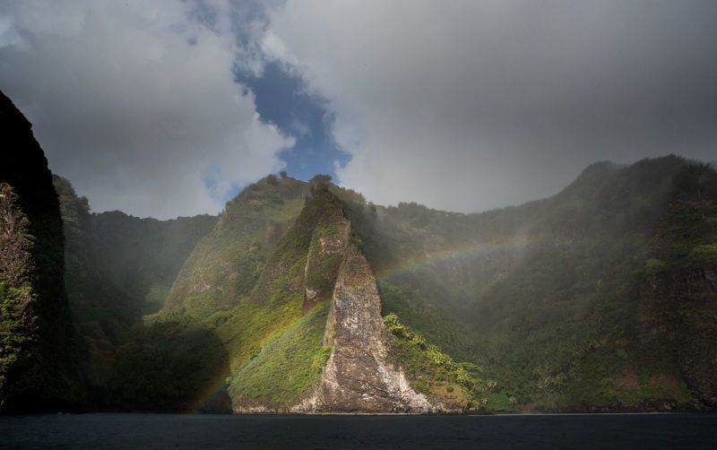 We woke up early in the morning as National Geographic Islander navigated along the northern part of Isabela Island. Slowly the sun appeared above the clouds surrounding Volcano Wolf. We spotted our first birds as Galapagos fur seals returned to shore from their night hunt. We enjoyed a great breakfast. Afterward, expedition leader Vanessa called everyone to the bow to celebrate as we crossed the equator. Our guests happily crossed the line. Approaching Punta Vicente Roca, the visitor site, we spotted Galapagos sea lions and a good number of ocean sunfish. The first activity of the day took place as we dropped anchor at Punta Vicente Roca. This is a spectacular geological site. The combination of the former volcano’s tall cliffs and the tuff cones formed later adds an amazing contrast to this unique visitor site. Our best tools for exploration, our Zodiacs, were lowered down, and off we went to explore the coast. We observed Nazca boobies and blue-footed boobies resting on the small ledges of the tuff cones. Galapagos sea lions swam close to our Zodiac, and Galapagos penguins rested on a broken piece of the tuff cone after feeding. What a wonderful sight! In a calm area, we found a good number of Pacific green sea turtles. The morning’s activities ended with snorkeling. Pacific green sea turtles, plenty of colorful fish, Galapagos marine iguanas and flightless cormorants surrounded us. It was a phenomenal experience! The ship was repositioned toward Fernandina Island. The youngest island of the archipelago, Fernandina is a highlight of our expedition. This island shows our guests the beginning of life. We observed animals thriving in the hostile environment. Pioneer plants like lava cacti grow on the lava fields, breaking down rocks little by little to create soil for the next generation of plants. Punta Espinoza is known for its huge colony of Galapagos marine iguanas. It is hard to distinguish the iguanas from rocks since they are so dark in color. On the other hand, colorful Sally Lightfoot crabs added contrast to the young, dark lava fields. We ended our walk as the sun was setting, returning to the ship with great memories. It was a fantastic day in the western part of the archipelago.