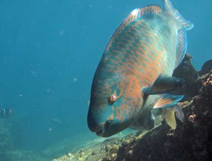 We spotted several lava lizards on the trail back to the beach, where we saw sea lions rolling around on the sand and in the water. Some of our guests joined them in the water to cool off. Back onboard, we motored for about four hours to Kicker Rock, a small but very impressive formation in the ocean. Isolated from the main San Cristobal landmass, its cliffs are a refuge for sea birds and its perpendicular walls underwater are preferred by sharks and rays.