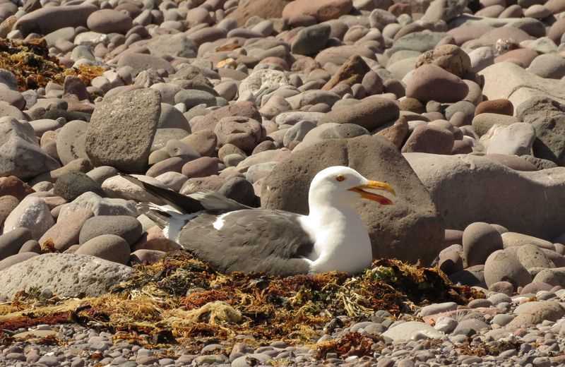 For this morning, we arranged an early sunrise party to San Esteban Island, which lies in the Midriff area of the Gulf of California. Facing southeast, the wide Arroyo Limantour is the best location to contemplate the sun rising over the mainland of Mexico. After breakfast, our guest and naturalists walked on the arroyo in search of the “pinto” or piebald chuckwalla, an endemic, “gigantic” version of the normal, mainland form of this lizard, and the spiny-tailed iguana, which constitute another endemic species. These iguanas climb up to the tops of cardon cacti to get the nutritious flowers and fruits. San Esteban has long been a very isolated island, and many of its reptiles and cacti are unique. Therefore it is regarded a “laboratory of evolution” by biologists. The waters around, though cold and with complicated currents, shelter a great diversity of marine wildlife too, so our expedition diver Maya ventured in the sea and captured this biodiversity with a submersible video camera. At noon, the National Geographic Sea Bird sailed north for the afternoon activities, and we encountered bottle-nosed and long-beaked common dolphins in the way. We anchored at Rasa, a little island that is the colonial breeding site for elegant and royal terns and Heermann’s gulls, and made cruises around it on the expedition landing craft. During these, guests and staff were enchanted with the number of nesting seabirds and their vocalizations (that filled the air and our ears with metal-like and laughing-like sounds). Dr. Enriqueta Velarde (a leading researcher and ornithologist of Rasa) joined us for dinner and made a presentation of her work on the island. We learnt a lot today and had a lot of fun!