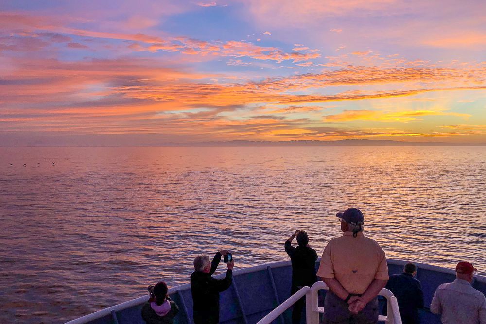 A beautiful sunrise across the peninsular range greeted us as we cruised the San Jose Channel this morning. We spotted a large pod of common dolphins surfing in the wake of our ship. Afterward, we came ashore at Puerto Los Gatos on the mainland of the peninsula. We hiked through the desert arroyo and summited a peak overlooking the bay. As we explored the shoreline of this remote coast, pink rocks of lithified sand dunes served as a striking backdrop for our peaceful morning. Guests snapped triumphant photos while taking in the whole of the arroyo’s ecosystem. During lunch, we repositioned the ship toward Isla San Jose. We spent our last afternoon in the protected waters of Kelly’s Beach. We enjoyed kayaking and SUPing, or stand up paddleboarding. Our small travel group became quite close over these last four days. We encountered a mix of emotions as we recounted our trip and prepared to say goodbye. I hope we will sail again together soon, and from all of us here aboard National Geographic Venture , we wish you safe travels!