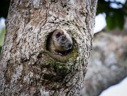 For the afternoon the Delfin II repositioned to visit Clavero Lake where we had the opportunity to swim and cool down from the high temperatures, followed by more explorations to look for more wildlife by skiff or by kayak. There were some nice sightings this afternoon, including a good view of a rare rodent which name is bigger that the rodent itself, called the yellow-crowned brush-tailed tree rat, looking down at us from its balcony in a hole high up in a tree, but the special show this afternoon was the incredibly beautiful sunset we enjoyed on the way back to ship. What a perfect ending to a perfect day!