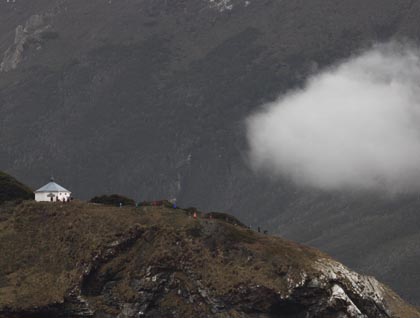 A gray, misty, and slow morning was the ideal setting for our entry to the San Juan de Salvamento fjord, where the “lighthouse at the end of the world” is located. The last adventure novel written by Jules Verne at the beginning of the previous century increased the legend of this remote island, already famous for its bad weather, savage winds, and treacherous surrounding waters. None of that was to be experienced by us today, and by mid-morning the clouds had given up their threat and the sun was once again shining over us for the second day in a row. A delightful hike through the last stands of forests before the Andes sink in the Atlantic Ocean placed us over a knoll overlooking the placid bay where the lighthouse proudly stands. Many wondered what it would be like to live here and experience some of the big storms that shape the rocks and vegetation around the building. The forces of nature are obvious in every direction here.