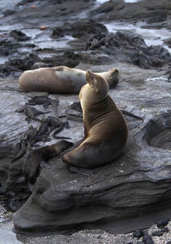 This afternoon we walked along the coast where we found Galapagos fur seals, great blue herons, striated herons, American oyster catchers, and Galapagos marine iguanas.