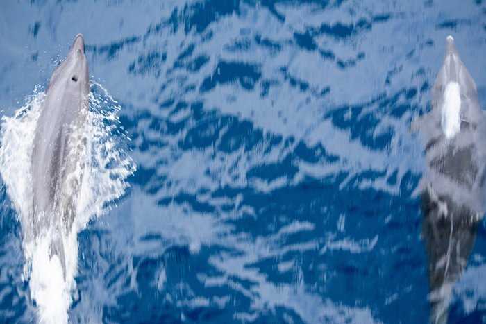 Baja California is truly proving itself to be one of the most magical places on the planet. Waking up this morning, National Geographic Venture was sailing north in the Pacific Ocean, offshore of the Baja peninsula. Having entered the open ocean for the first time in this trip, we were hoping to see some animals that are not always found in the Sea of Cortez. We were not disappointed! Bottlenose dolphins joined the ship as the sun rose, surfing along in the pressure wave created by the ship’s bulbous bow. During breakfast, rafts of about 100 California sea lions raced over to play in our wake, and two humpback whales even swam and twirled off of our stern, giving guests a show through the panoramic windows in the dining room. Throughout the morning there were sightings of many new seabirds [pink-footed and black-vented shearwaters, western and California gulls] and cetaceans [Pacific white-sided dolphins] as we made our way towards the entrance to Magdalena Bay.