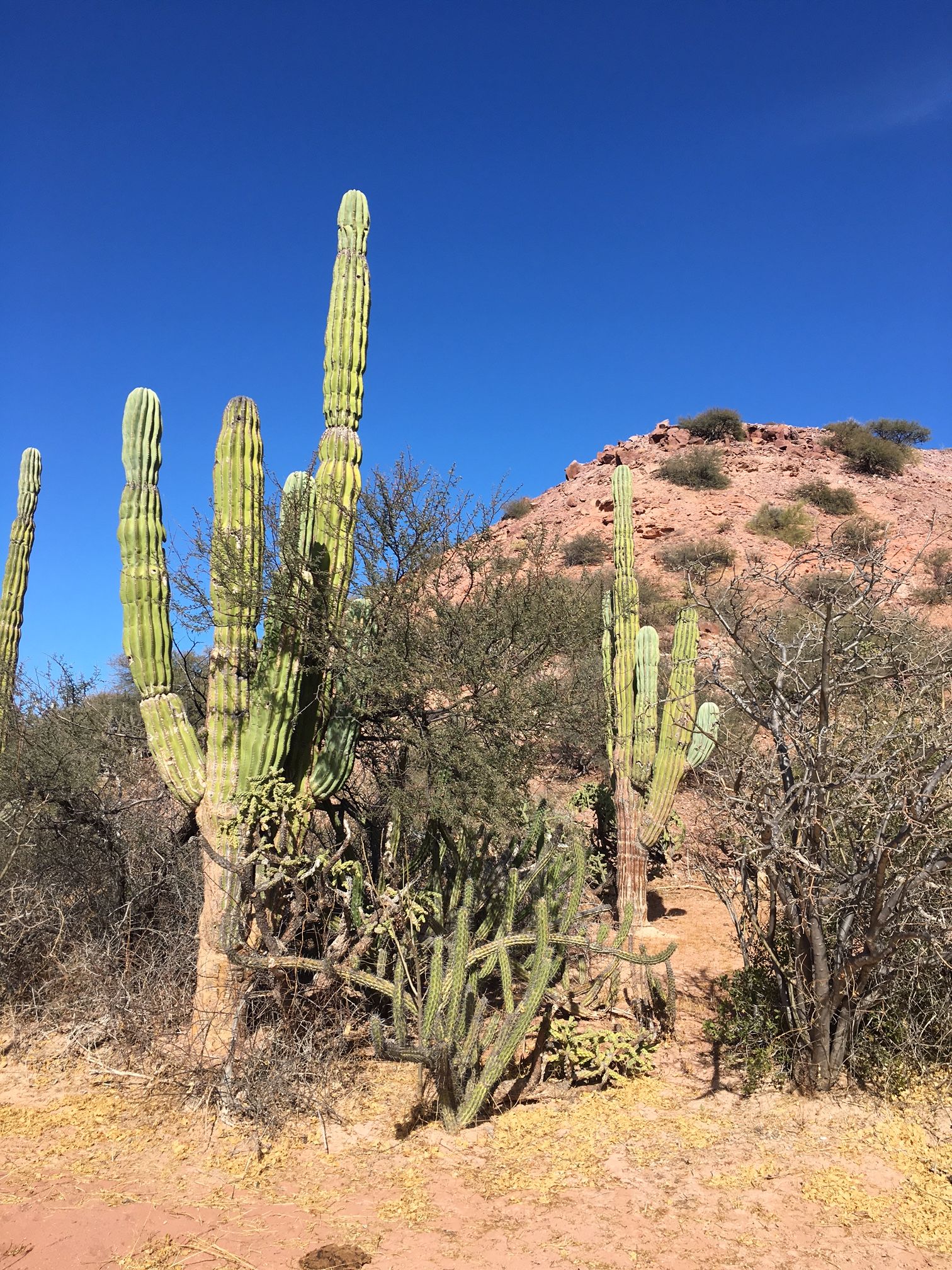 This morning, National Geographic Venture docked at the interesting port, San Carlos. From the 1940s to the 1990s, the port was used for loading agricultural products and fertilizers from the nearby Santo Domingo Valley. Nowadays, San Carlos is basically a place for loading sardines from a local cannery. It is also an important tourist base for whale-watching, principally mating gray whales. At the port, all guests and staff boarded buses to Lopez Mateos, a town located near the northernmost tip of Magdalena Island. The buses traveled across Magdalena Plain, a section of the Sonoran Desert that receives a lot of moisture in the form of dense fog from the Pacific Ocean. Lichens and orchillas, a type of flowering plant, give the desert a phantasmagoric appearance. Guests and staff enjoyed spotting numerous birds, including crested caracaras and kestrels. Once in Lopez Mateos, we boarded local pangas for whale-watching. During two rounds of whale-watching, we encountered several whales close to our pangas. However, most of the whales were preoccupied with traveling, searching for mates, or just finishing their time of reproduction and thus exiting the lagoon. In reality, the whales were not interested in interacting with the boats and their excited cargo, but we had many opportunities to observe the behavior of these magnificent animals. In town, we all delighted in a delicious fish lunch, ‘pescado zarandeado.’ We enjoyed exploring the local dock with its many colorful shops and crafts, and we admired the wonderful sculpture of a cow-calf pair of gray whales.