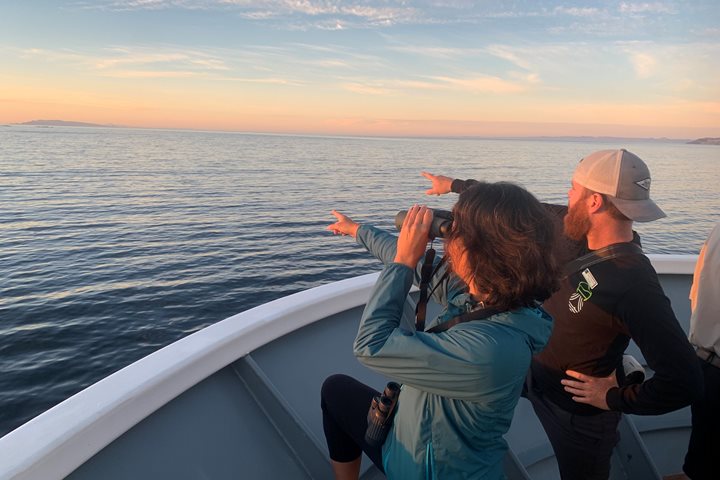 Waking to another clear sky sunrise, the National Geographic Sea Bird ventured through the waters of the Sea of Cortez in search of what the water might reveal. With eyes on all sides, the guests and staff peered over the expanse of the blue water to find red-billed tropicbirds, blue-footed boobies, California sea lions, and even a scalloped hammerhead shark. Not long after, we were visited by a megapod of common dolphins spritzing off the bow of the boat, and dashing back and forth in the wake we left behind. After getting our fill of play and pictures with these marine mammals, we continued south toward the planned adventures of our afternoon.