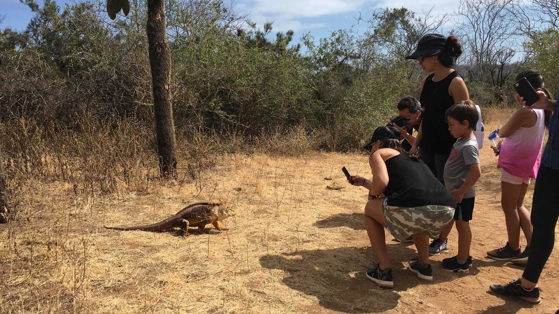 Today we woke up anchored on the northwest part of Santa Cruz, the second largest island of the archipelago. We enjoyed a delicious breakfast and then went to Dragon Hill to start our daily exploration. Dragon Hill is a tuff cone, which means compacted and pulverized ash. Our hike was in a dramatic landscape, even though it’s the desert there are many endemic and native plants species. In addition, this place is the home and nesting site of many land iguanas (Conolophus subcristatus); we spotted more than a dozen of these individuals and learned about them and their different behaviors.