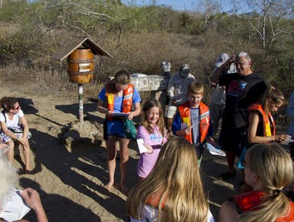 Once you are in the Galapagos Islands, the expectations of our guests are always in a high level. So in order to not disappoint them, following the schedule the National Geographic Endeavour anchored in Puerto Ayora which is the harbor of Santa Cruz Island. This island hosts more than the fifty percent of the “Galapagueños” as well as the main offices of the two institutions that help to preserve Darwin’s legacy. The Charles Darwin Research Station offered the best opportunity to see the animal that represents this archipelago, the giant tortoises. In this place we had the chance to find some of them resting after been fed by the people who keep them and wandering around their corrals. Also the land iguanas in their pens were the very cherry of this chocolate cake. Adults, juveniles, and babies stole more than a smile from our faces during the excursion.