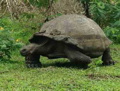 In the afternoon, after having lunch surrounded by a lush green forest proper for the higher part of Santa Cruz, we organized groups to go on a giant tortoise hunt and to visit a lava tunnel. Because of recent rains, there were several large freshwater lagoons fully covered by water fern. In the surrounding areas as well as in the lagoons, we found lots of giant tortoises. Many were huge and actively feeding very close to us!