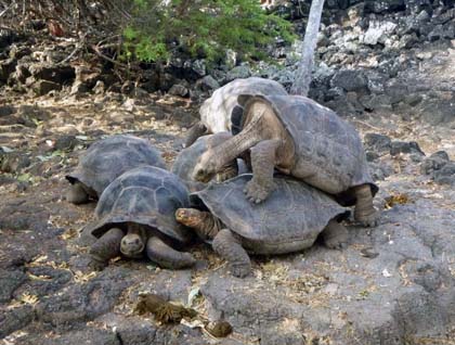 In the afternoon we explored the highlands of Santa Cruz under a tropical sun.  This region is green throughout the year and it is home for many of the endemic species that inhabit the Galapagos. The Galápagos giant tortoises are distributed across a large part of the rainforest on Santa Cruz. There is a population of more than five thousand individuals on this island only. Today we spotted a lot of them, females as well as many large males.