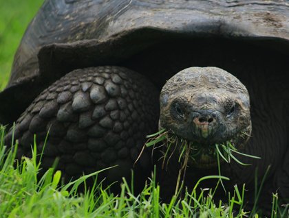 Walking among the corrals of the breeding center, we observed two distinctive-types of tortoise shells. Some individuals had the saddle-backed shape, while others had the dome-type. In a lucky stoke for us, today was feeding day. Heaps of leaves were piled in the various corrals and the tortoises seemed quite happy about this. Many of the babies born in captivity will be repatriated back to their home islands when they reach a suitable age. The ultimate goal is to have them reproduce successfully in the wild.