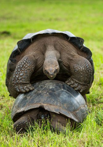 Lunch was delightful in a green glade gazebo in the highlands. It was a nice chance to cool down, eat excellent fare and relax a bit. Soon enough we moved on to another bit of private property where giant tortoises of the Santa Cruz race live freely, wander freely, and throughout the year migrate up and down the slopes of the volcano at will. The tortoises follow the food supply or the opposite sex for procreation purposes.