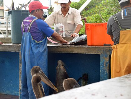 After visiting the famous Charles Darwin Research Station and learning about the captive breeding program that has resurrected many populations of that most emblematic of Galapagos species, the giant tortoises, we all had a chance to walk through the bustling, picturesque port town of Puerto Ayora. A great highlight of any visit to this town is the wonderful fisherman’s dock and market at the aptly-named Pelican Bay. Local fishing boats come in daily and fishermen and their wives sell their produce to locals all while trying to keep pelicans and sealions away! Always a good show.