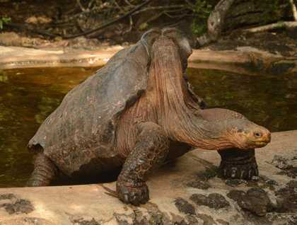 We had a hearty breakfast and then boarded the Zodiacs for a short ride into shore where we landed at the main town dock. Three buses took us to the far side of town and into the headquarters of both the Charles Darwin Station and the Galapagos National Park. Naturalists Gilda, Celso and Paul led us a half mile along a cobble paved road to the captive breeding enclosures for giant tortoises. As I had explained in our evening briefing, a recent exciting discovery of tortoises with genetic material from the extinct (we thought) populations from the islands of Pinta and Floreana has given us new hope for saving these two races of tortoises. The large dome tortoises that we saw this morning are new additions to the captive breeding program and are some of the ones recently brought from the slopes of Wolf volcano. We saw “Super Diego,” too, an old saddle-backed male. He is the excellent breeder from the island of Española and was returned to Galapagos in the 70’s from the San Diego Zoo!