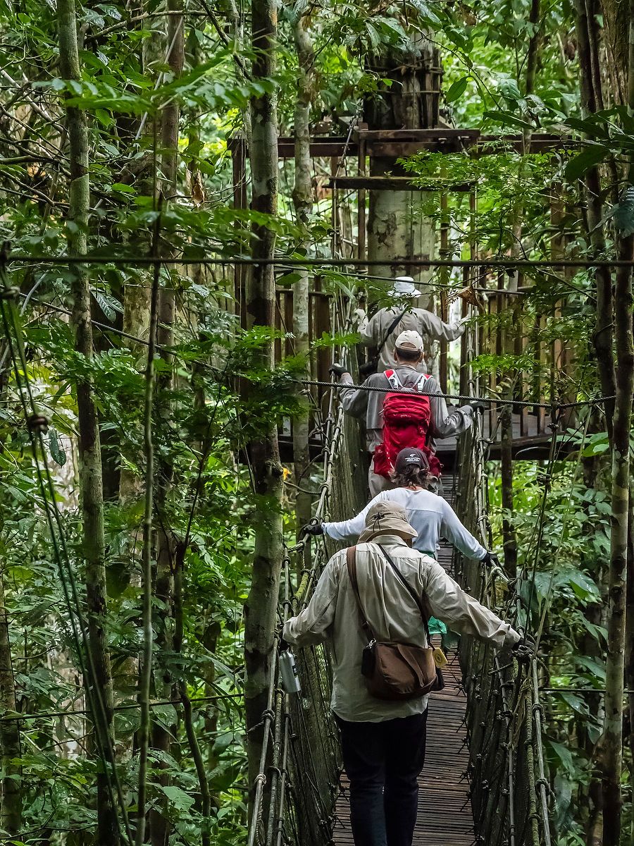 After lunch we headed to El Chato, another farm where our guests had a chance to observe giant tortoises in their natural habitat. Along the trails, many giant tortoises fed on grass and ripe fruits, while in the small ponds of muddy water, other rested peacefully. Afterwards, we had a chance to cross an incredible lava tunnel, which inside was very wide like a real empty chamber but with another smaller lava tunnel inside. Walking inside the tunnel, we noticed how the tube became narrower at the end, making it possible to distinguish the second deck of the small lava tube inside, a unique formation created due to explosive eruptions a long time ago. We finally returned to Puerto Ayora, where local residents worked out playing ecuavolley (an Ecuadorian version of volleyball). At night, our guests were delighted with a traditional choreography and a local band, that played wonderful music with their unique instruments. It was impossible to avoid dancing!