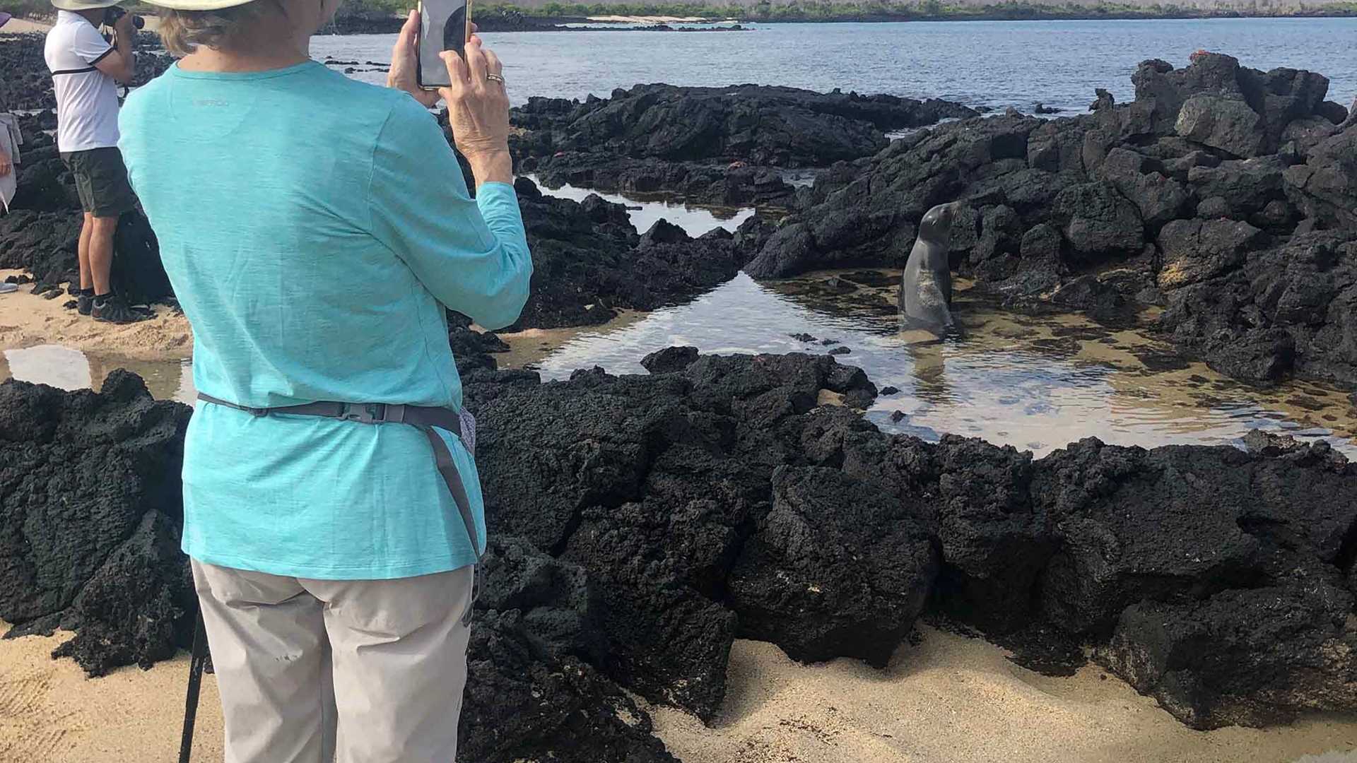 After our hike to Cerro Dragon, we disembarked once again for our snorkeling outing. Guests had the option to do beach or deep-water snorkeling. Deep water snorkelers observed many tropical fish species, including giant damselfishes and scrawled filefishes. Some guests were lucky enough to snorkel with Galapagos sharks. Given that Guy Fawkes is an oceanic islet, pelagic fish tend to congregate in this area, including bonito and tuna.