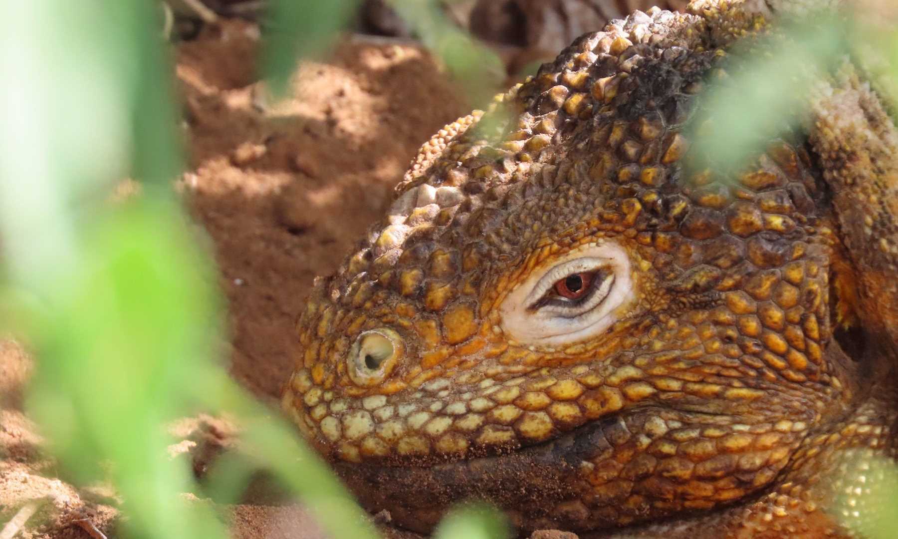 Along the trail, we saw beautiful yellow cotton flowers endemic to Galapagos, a few small and medium beak inches, Galapagos mockingbirds were also along the trail looking for insects. The trail was clean, nonetheless, the entire area was covered with ground plants that made a little bit difficult to find the land iguanas. We did find a few iguanas here and there, some more colorful than others and some more skittish, which made it harder to take pictures of them.