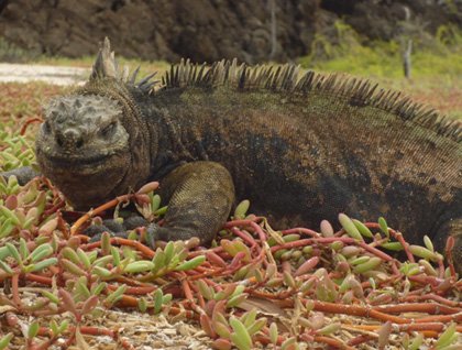 Today we started our exploration at the northwest end of Santa Cruz Island. Our first excursion of the day was to a visitor site of the National Park known as Cerro Dragon, named after the Galapagos land iguanas. After our breakfast, we disembarked on a rocky coast that took us to a trail by the coast. The morning was spectacular, blue skies and sunny day were our companions during this hike. On the coast we spotted several marine iguanas sun basking on the green carpet mat plant creating perfect photo opportunities. Further on we walked by a brackish lagoon that took us to the land iguanas territory. At this site, we had the help of our younger explorers, who helped us to locate many land iguanas. After learning about the ecology and biology of these endemic reptiles, we climbed to the top of a small hill to take in an amazing view of Santiago Island and a group of small satellites islets known as Guy Fawkes, named after the British man that planned the failed Gunpowder Plot of 1605.
