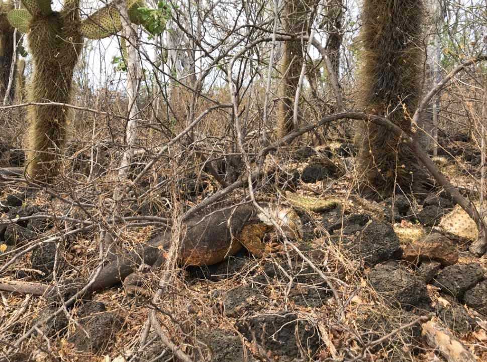 After breakfast, we started the first outing of the day for the hike of Cerro Dragon, where we encountered some lava gulls, striated heron and Galapagos land iguanas around the trail, and in the lagoon there were some black-necked stilts among other shore birds. The hike was very warm and the first rains from the wet season have brought fresh water to the region.