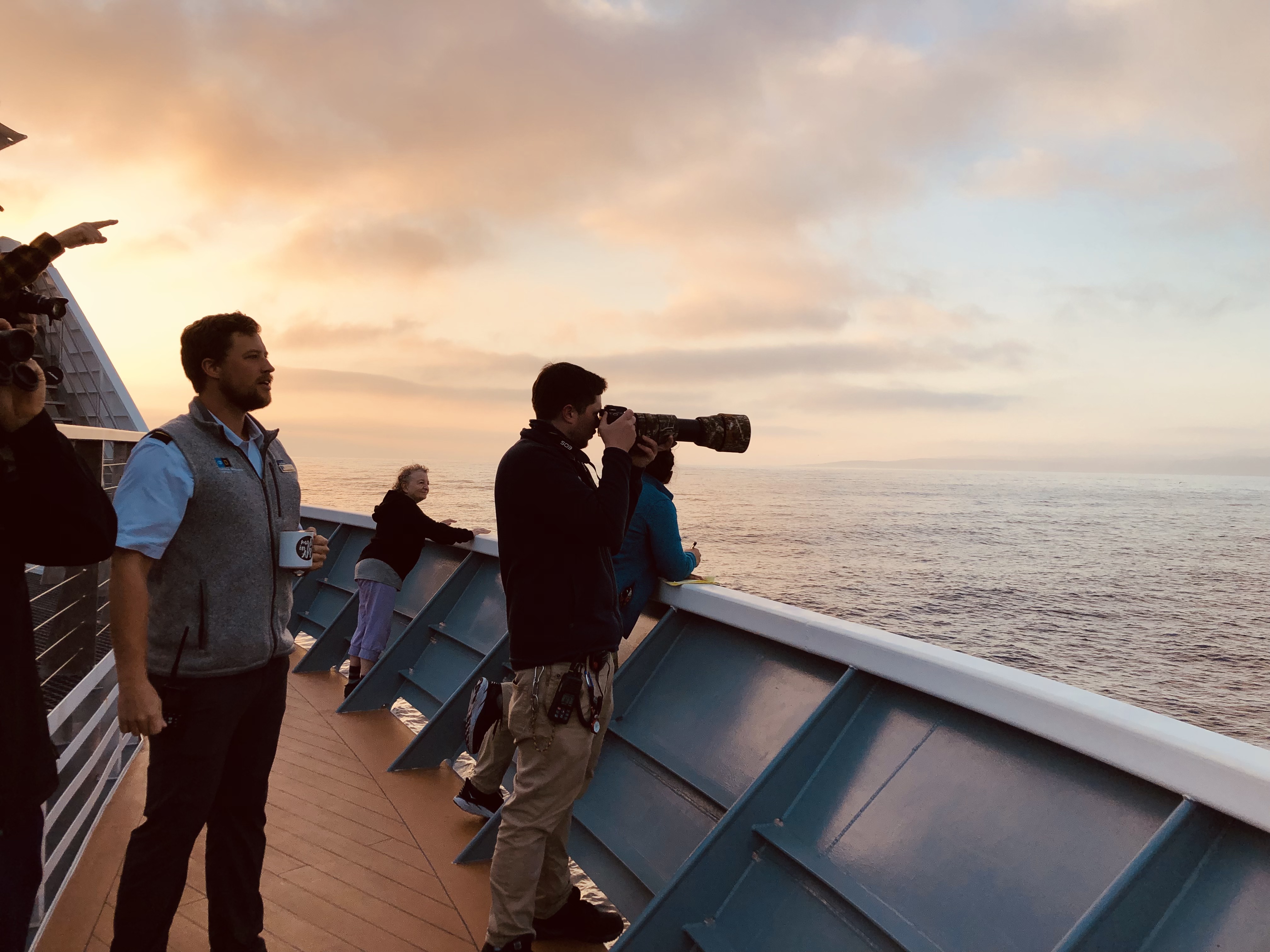 Santa Rosa Island was the backdrop of a morning that can only be described as explosive biodiversity. It was 6:15 on the bow as the ship slowly approached a long stretch of rippling surface water. As we floated closer, we could see the water churning with leaping California sea lions. Cormorants, gulls, and shearwaters circled above them. Then there was a surprise blow and fluke of multiple humpback whales. Finally, from the direction of the island, a pod of common dolphins made a beeline to the feeding waters. Anchovies are the suspected boil of fish and the cause for commotion. We, the observers, were there to see it at its peak...all before breakfast.