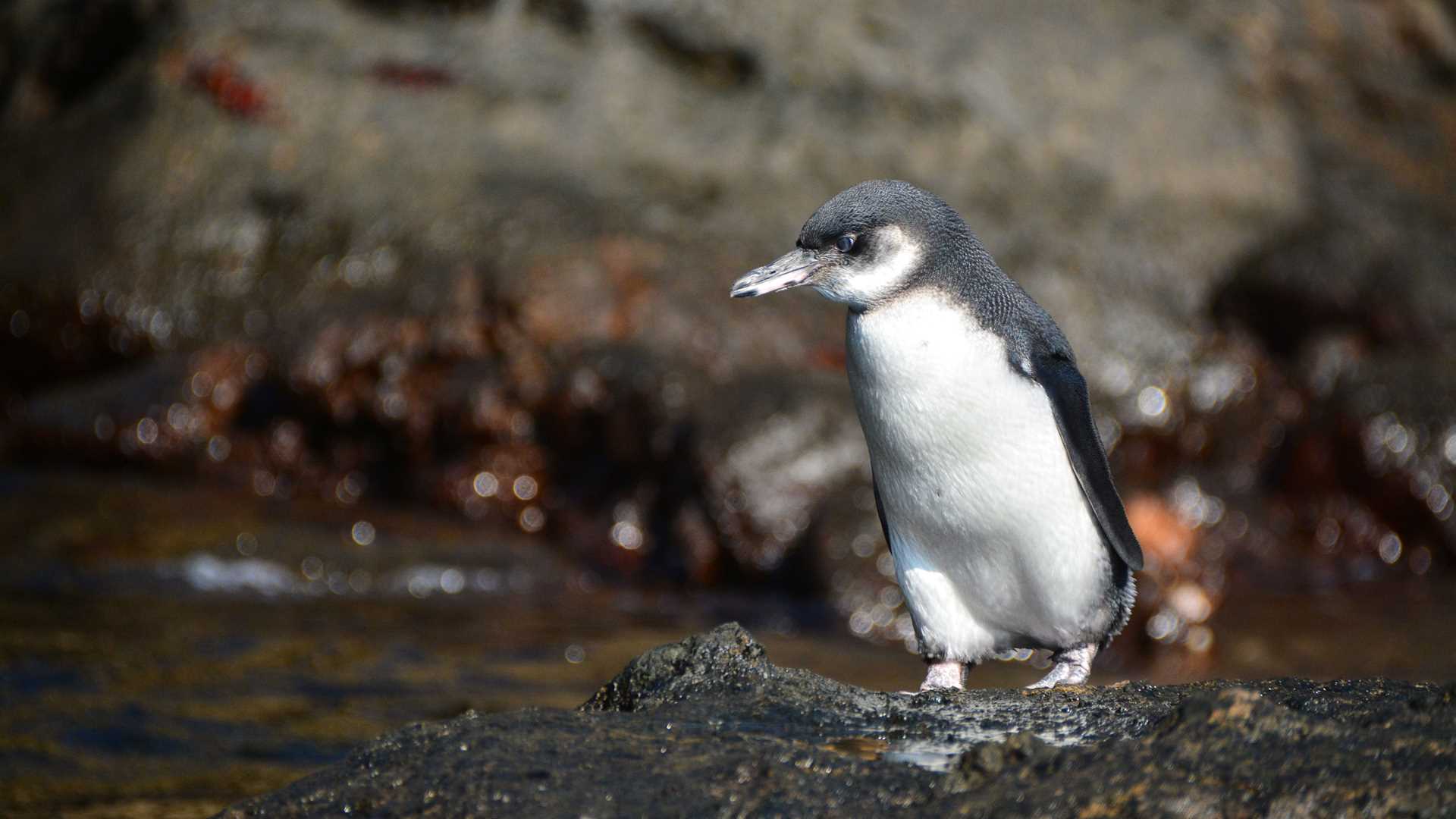 After breakfast, we boarded Zodiacs and kayaks to explore the surroundings of Chinese Hat. The wind was blowing strongly, and the ocean looked completely turquoise and transparent, making it possible to observe the ocean floor and even some sharks and sea turtles swimming near the coast. We passed close to the coral beach, where American oystercatchers and whimbrels strolled indifferently near sea lions. Observing Santiago Island from across the channel, its landscape changed drastically. We observed immense fields of completely black lava that looked sterile without vegetation. These fields contrasted with the green vegetation of the island’s highlands. It was here that we spotted some Galapagos penguins leaving their nests, getting ready to start their daily routine of foraging. Their white plumage makes them easily identifiable from a distance. Due to their meekness, we were able to get close enough for guests to photograph them.