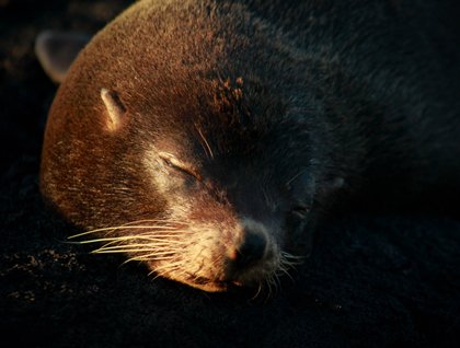 At the end of the hike, we got to the “grottos”, which are stunning collapsed lava tubes with ocean water flowing in and out of them). This stunning location is the perfect place to look for Galapagos fur seals, and sometimes regular sea lions are found coexisting nearby.