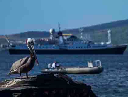 After breakfast we repositioned the National Geographic Endeavour, to our next stop of the day—Buccaneer’s Cove. At this site our expedition leader organized several activities, including deep water snorkeling trips, kayaking and glass-bottom boating. Our guests were amazed with the excellent conditions—it was a perfect day for snorkeling. Our explorers found large schools of fish, white-tipped reef sharks, diamond rays, and many sea lions. Exploring along the shoreline with the kayaks was also quite an adventure, as there was a great diversity of sea birds.