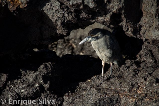 In the early afternoon I offered an extra snorkeling and beach visit and we disembarked on a black sand beach at Puerto Egas. The tide was low and we thoroughly enjoyed swimming, snorkeling, building in the sand and watching the sea lions come in from fishing to rest on the warm dark beach. Just off shore pelicans dove on schools of sardines and noddy terns, hoping to steal a fish, landed on their heads. Most of us headed off on a nature hike along the beautiful coast. We discovered fur seals swimming in the grottos and sea birds, iguanas and the brilliant red Sally light foot crabs along the black lava shores. As the sun set behind the volcanoes of Isabela Island to the west we headed back to the ship in the Zodiacs. It had been yet another incredible day in Las Islas Encantadas Galapagos!