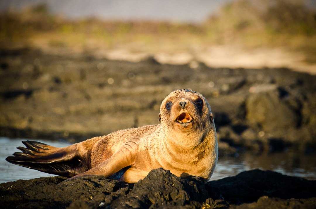 Here we had our second opportunity of the day for snorkeling while some of our guest took advantage of the landing at a beach to either sun bade or explore this beach where Galapagos sea lions regularly haul out to bask in the sun. Later on in the afternoon we regrouped for a hike along the exposed shoreline just south of the anchorage. The high tide had just pushed the marine iguanas above the wave beaten shoreline and as we reached some grottos at the southern most reach of our hike we got to have our first close up encounter with Galapagos fur seals which prefer the rocky shores to the open beaches for the easy access to shade during the hottest moments of the day.
