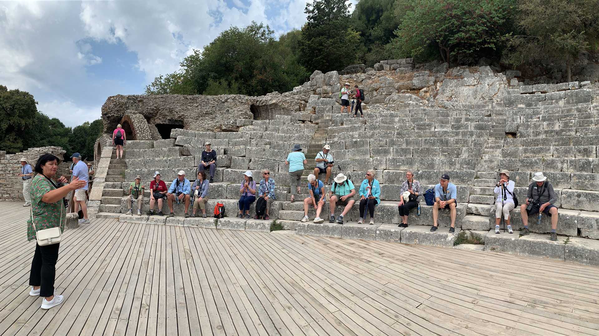 A big cloud covers the city of Sarande, but only while we need it to keep us cool. We are literally the very first to arrive to Butrint. The gates open for our guests, just as they were unlocked exclusively to the Greeks in the 4th century BC. We walk into an archeological site that takes us 2,800 years back in time (or maybe more), through different episodes of Mediterranean history. We pass the impressive Hellenic walls built on gigantic angular limestone rocks that fit together without the use of mortar.
